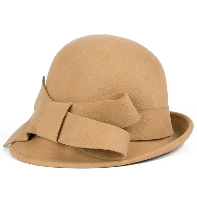 New100% Wool Europe England Fall Winter Women's Fedora Caps Vintage Sun Hats For Woman Lady Wide Brim Wool Felt Bowknot Hat