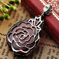925 стерлингового серебра Ретро красный гранат кулон Роза Для женщин тайский серебряный Ювелирные украшения подарок CH018344