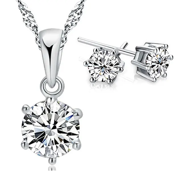 Yaameli модные 925 пробы Серебряные комплекты ювелирных изделий Для женщин лучшие подарки блестящее ожерелье кулон и сережки-гвоздики большие продвижение